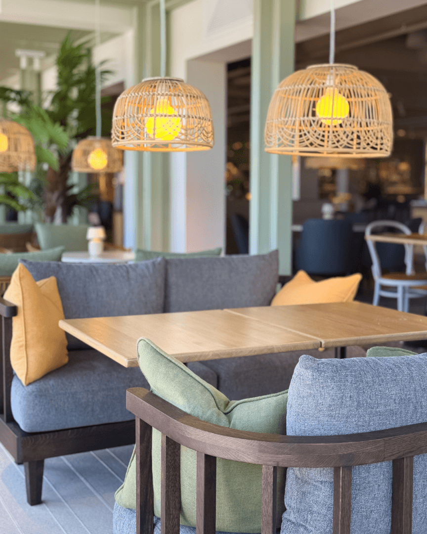 Berg & Dahl har levert alt av møbler, interiør og dekor – fra gulv til tak. Prosjektet omfattet skreddersydd bar og resepsjonsdisk, spesiallagde møbler til lounge, restaurant og uteservering, buffetløsninger, gjennomført belysning og detaljerte løsninger helt ned til toalettrommene.