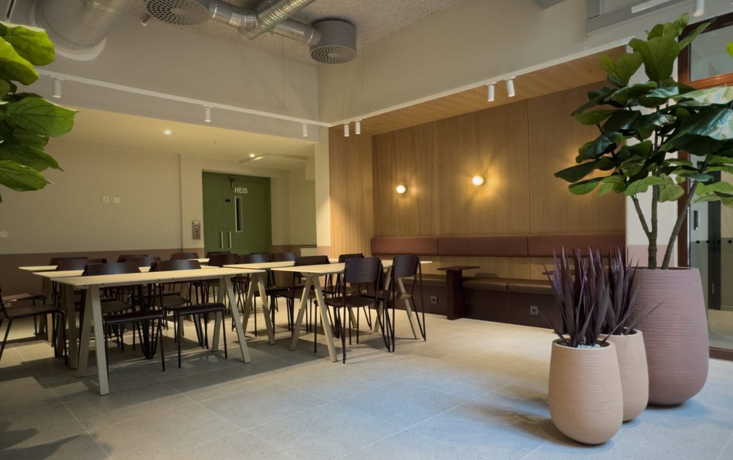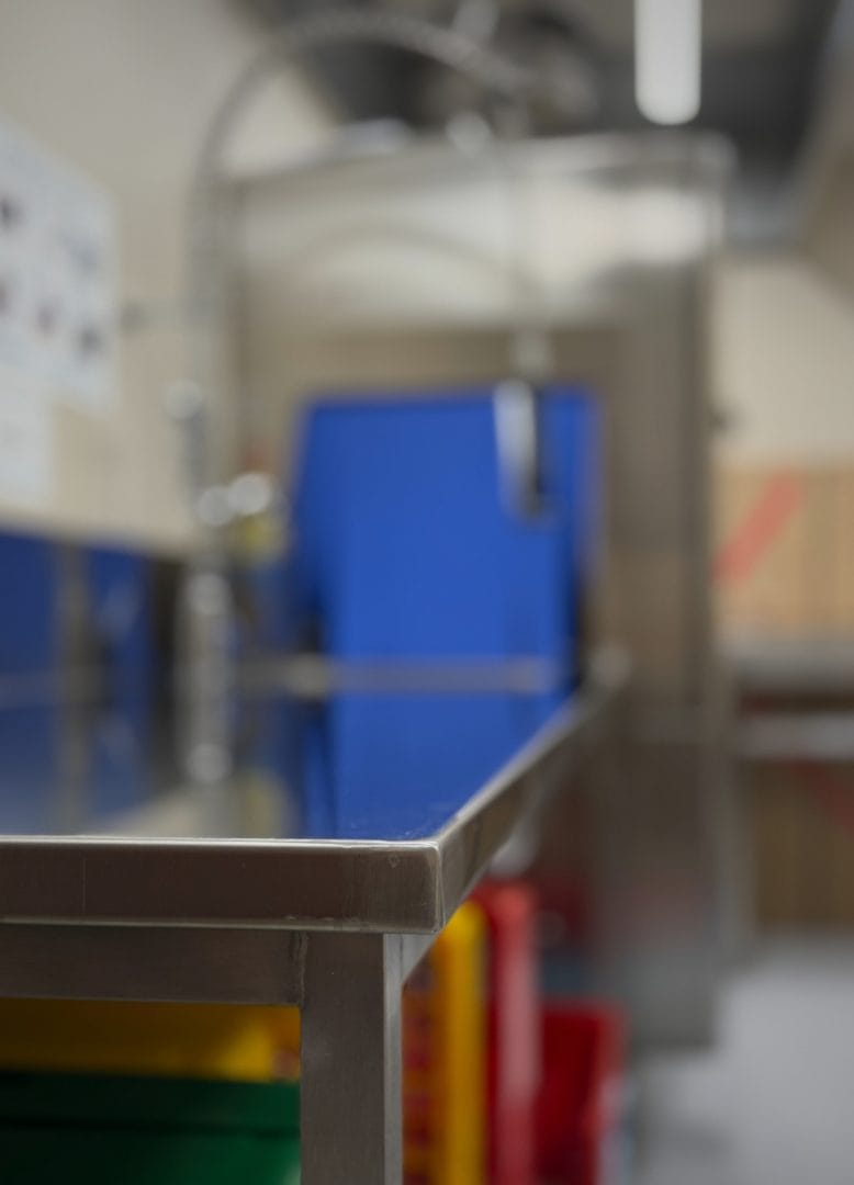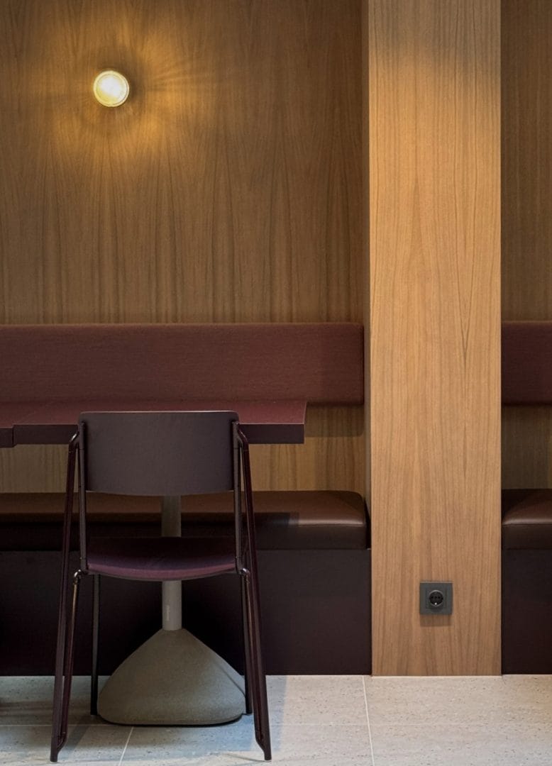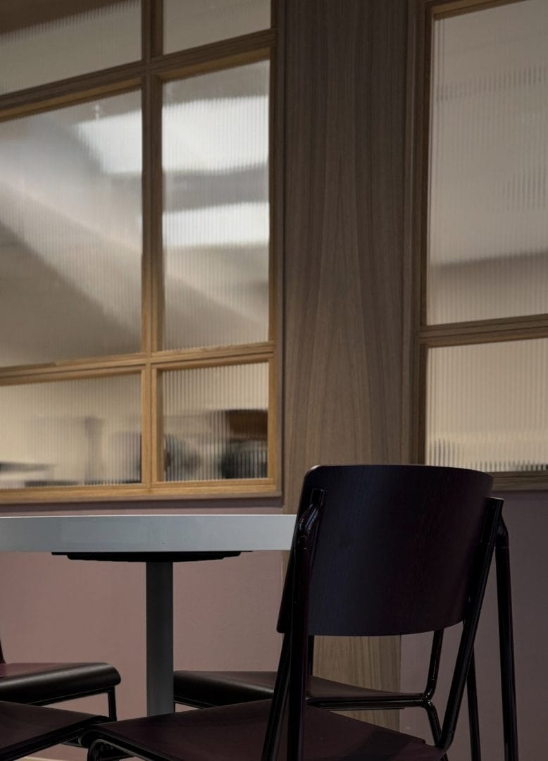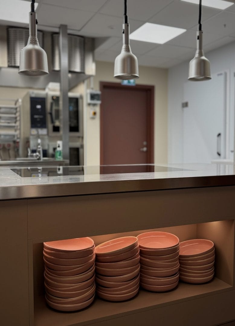 Vi har levert hele kantineløsningen, inkludert alt av møbler, spesialtilpassede snekkerier, belysning og buffetdisk. Vi har også levert komplett storkjøkken med alt av kjøkkenutstyr og oppvask – skreddersydd for høy kapasitet og effektiv drift.